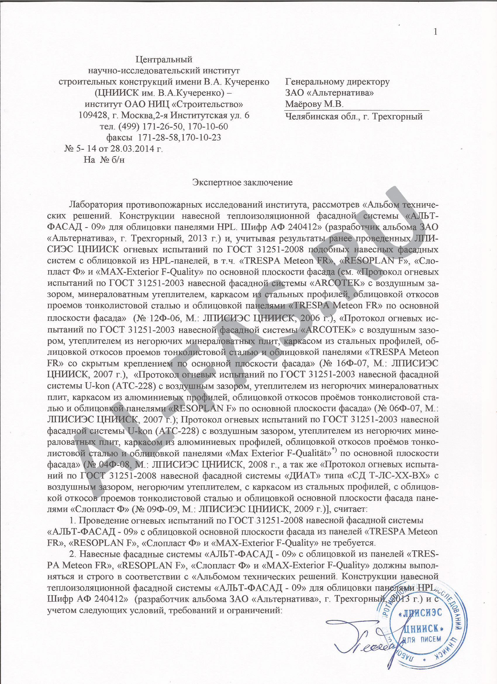 • Группа горючести облицовочного материала Г1